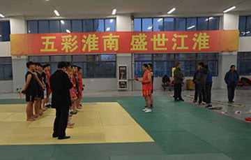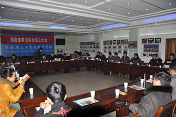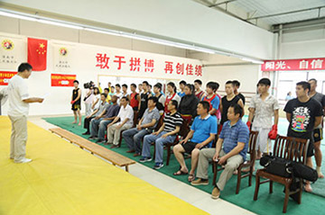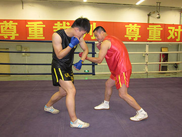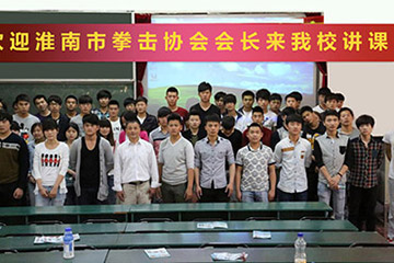 焦会长在师范学院拳击分会成立仪式上演练拳击